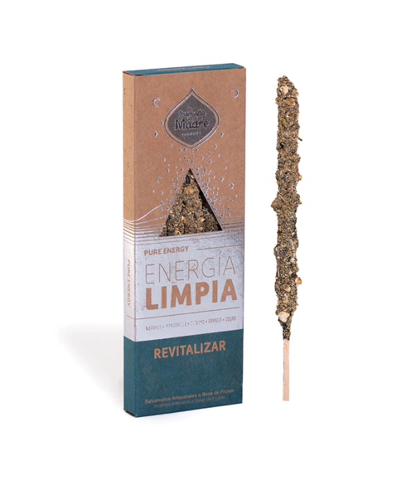 Composición: Cáscara de naranja, flor de manzanilla, aceite de pomelo, resina de olíbano, cedro, aglutinante natural, carbón vegetal y sal.
